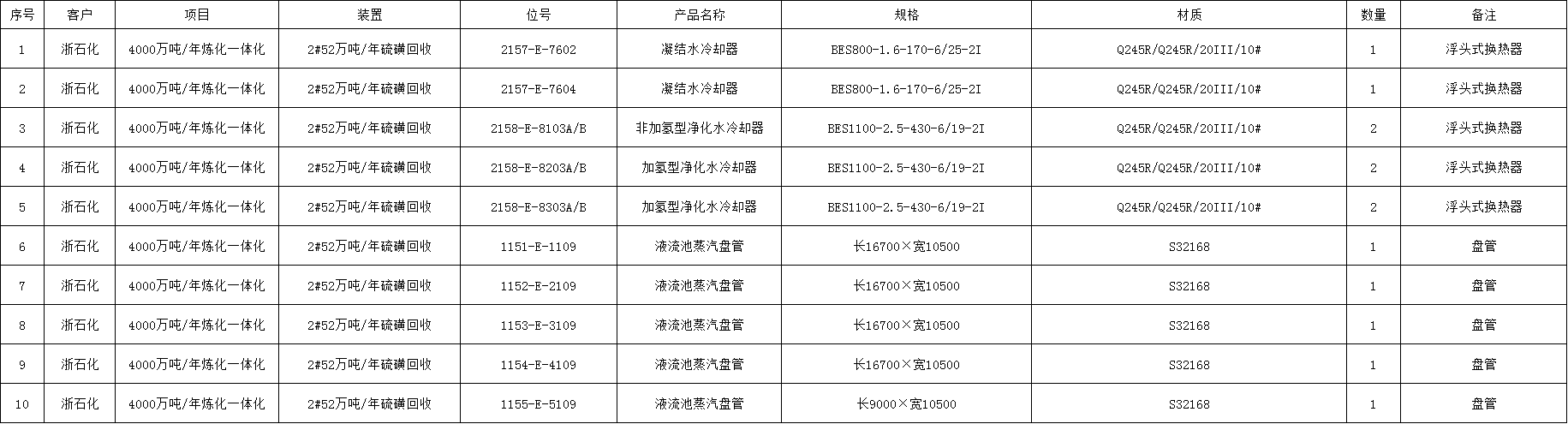 浙石化/丙烯塔冷凝器
